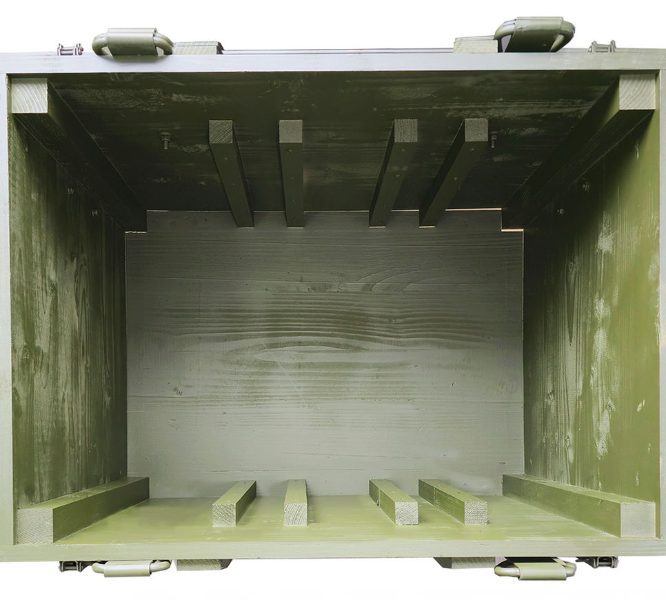 Unsere Produktion ist selbstverständlich zertifiziert und die Kisten entsprechen den technisch angeforderten Sicherheitsanforderungen für Szenarien wie Absturz, Fremdbeschuss, Brände, Detonation der Munition etc.